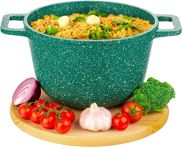 Казан "Гармония вкуса" объемом 3 литра с крышкой равномерно разогревается и распределяет тепло таким образом, что продукты в нем остаются сочными и сохраняют все свои полезные и вкусовые свойства. Казан выполнен из толстостенного литого алюминия и имеет ультрапрочное двухслойное антипригарное покрытие Cookmark. Покрытие устойчиво к царапинам и износу, полностью безопасно для здоровья и не содержит PFOA или других вредных веществ. Эксплуатация: не нагревать без продуктов. Дайте посуде остыть, прежде чем помещать ее в воду. Использовать только деревянные и силиконовые приборы. Не мыть абразивными или щелочными моющими средствами. Использовать в посудомоечной машине только в режиме "Эко". Подходит для всех типов плит, кроме индукционных. Можно использовать в духовом шкафу без крышки при температуре до 250 градусов.