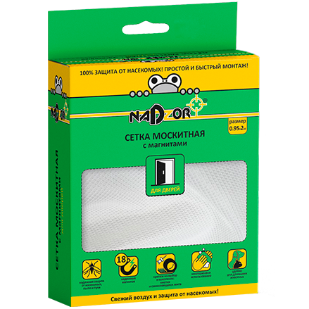 Москитная сетка позволяет держать открытыми двери, постоянно получать свежий воздух и солнечный свет, при этом, не пропуская в помещение насекомых, пыль и тополиный пух. Девять пар магнитов аккуратно вшиты в шторы и позволяют мгновенно открываться и закрываться полотнам. За счет этого шторы всегда остаются плотно закрытыми. В комплекте есть крепеж на выбор. Самоклеящаяся репейная лента отлично подходит для установки на пластиковые поверхности, а кнопки – на деревянные. После установки сетка не препятствует открыванию и закрыванию дверей.