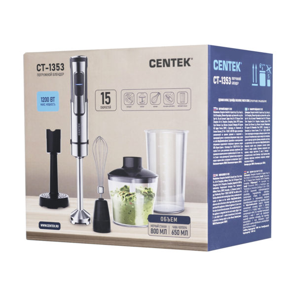 Купить Блендер Centek CT-1353 (сталь) 1200Вт, 3в1, блендер/венчик/чоппер, 650мл +мерный вы можете в компании Дровосек-НК, оформив заказ в интернет магазине, или отправив заявку по почте, а также по телефону или в офисе компании.