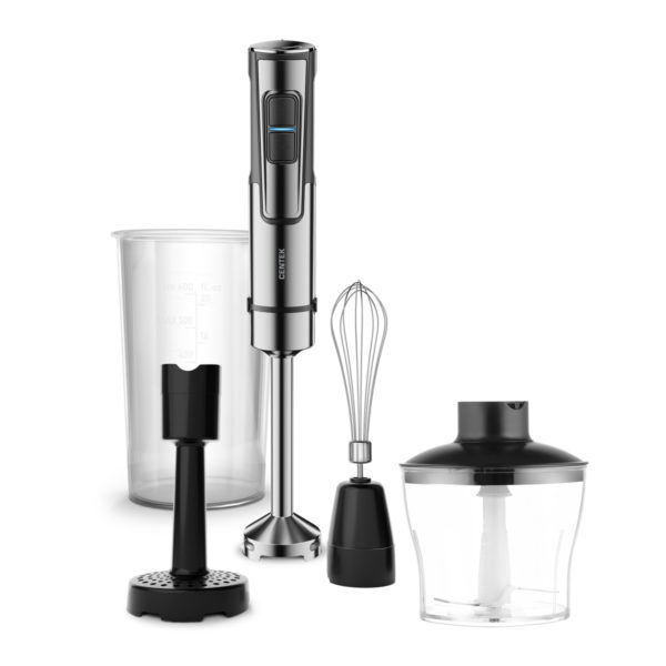 Блендерный набор 4 в 1 Centek CT-1353 – это миксер, ручной блендер, чоппер и насадка для пюре в одном приборе. Мощность 1200 Вт и специальная заточка лезвий способствуют быстрому и качественному приготовлению. Высокое качество материалов: насадки и ножи сделаны из высококачественной нержавеющей стали.