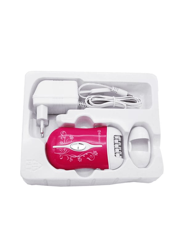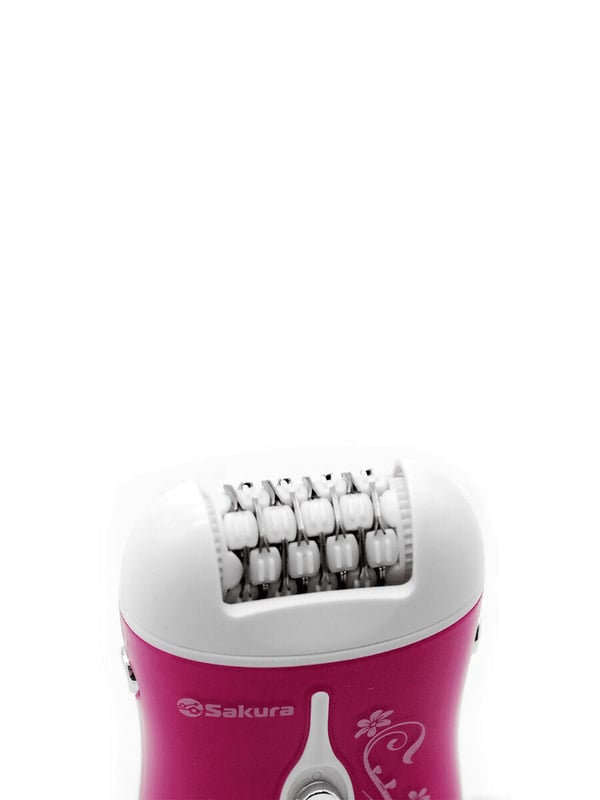 Эпилятор Sakura SA-5540P розово-белой расцветки работает как от сети 220-240 В, так и от Ni-Mh-аккумулятора (2xAAA 600 мА*ч). Время работы аккумулятора достигает 45 минут. Время зарядки — 8 часов. Прибор весом 350 г предназначен для удаления волосков с тела путем их выщипывания вместе с корнем с помощью 32 мелких щипцов на вращающейся головке эпилятора. У модели механическое управление с помощью кнопки включения. Есть два режима работы.