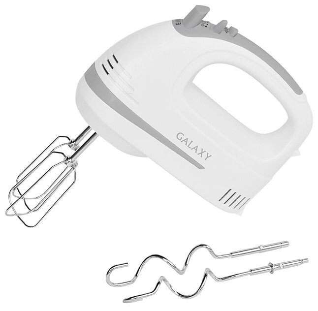 Миксер Galaxy GL 2209 в традиционном белом корпусе из пластика является простой моделью для замешивания жидкого или густого теста, приготовления пюре из фруктов и овощей и смешивания ингредиентов для любых блюд. Миксер имеет мощность в 300 ватт и 5 скоростей с плавным переключением. Рычаг переключения скоростей и кнопка "турборежим" находятся в верхней части корпуса. Модель оснащена двумя насадками, включая венчик для взбивания, и крюками для замешивания густого теста для пирогов. Насадки крепятся к рабочему механизму вручную, при этом плотно фиксируясь, а отсоединяются посредством нажатия на кнопку.