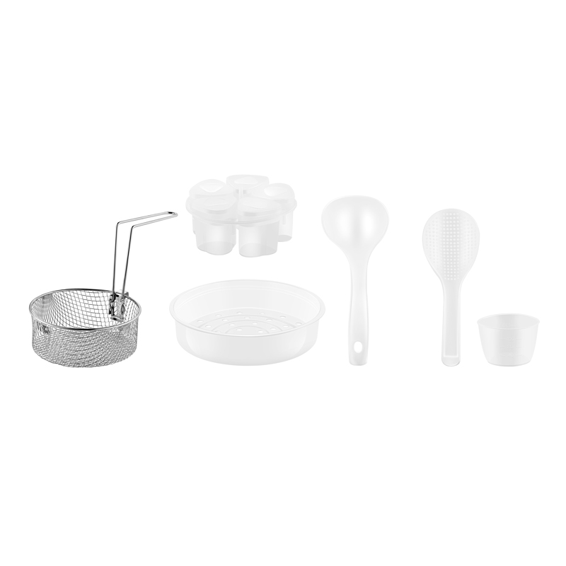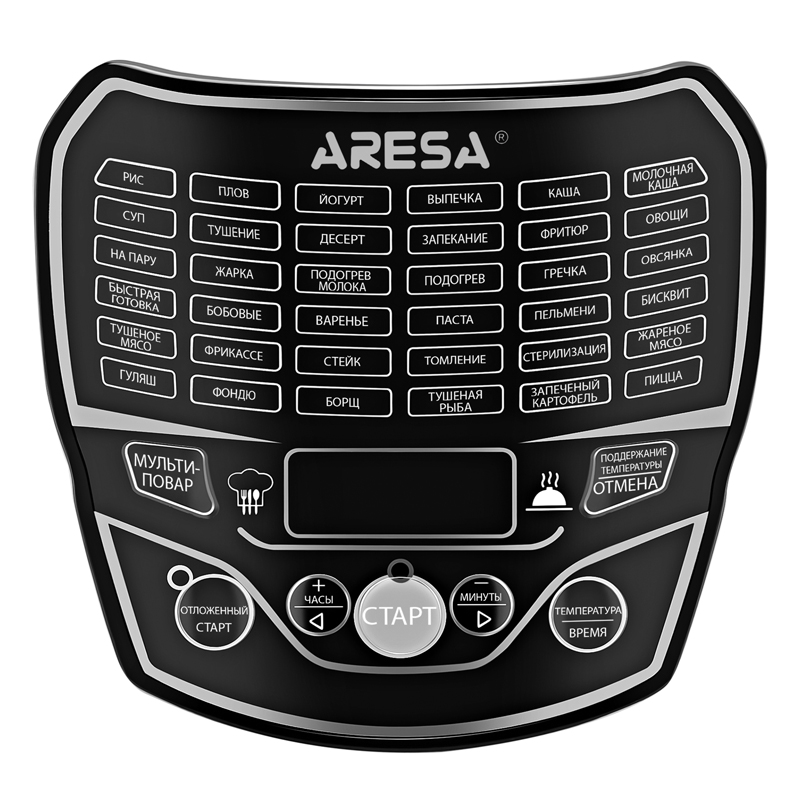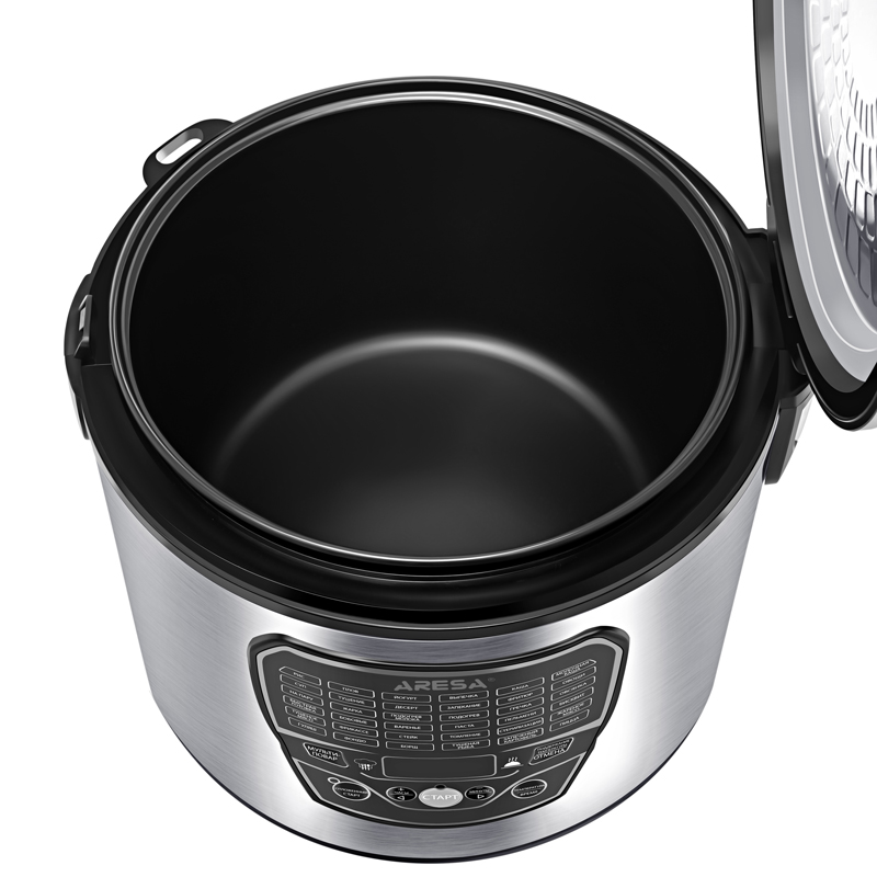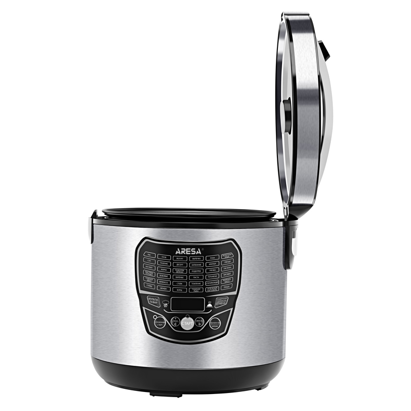 Панель управления с сенсорными кнопками и дисплеем гарантирует простой процесс выбора необходимых параметров. В наборе с мультиваркой ARESA AR-2010 предусмотрены емкости для йогурта, корзина для приготовления на пару, плоская лопатка, половник, корзина для фритюра и мерный стакан.
