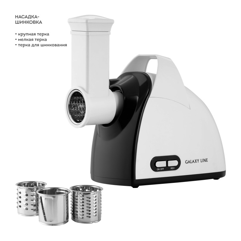 | Насадки | Насадка-терка, для шинкования, для приготовления колбас, соковыжималка, для кеббе |