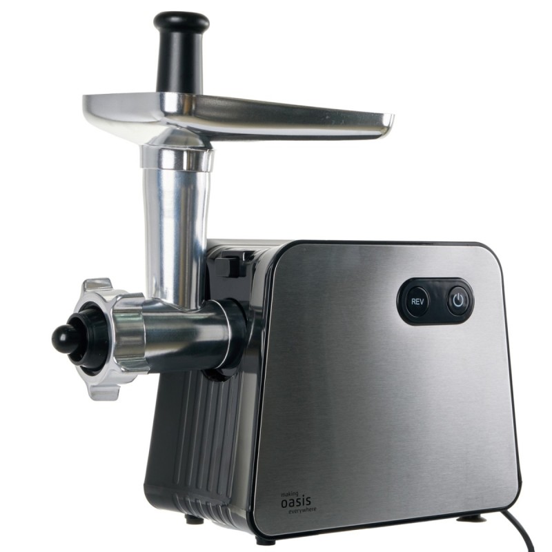 Мясорубки making Oasis everywhere MG-TK2 – это кухонный прибор, предназначенный для переработки мяса в фарш. Также он подходит для измельчения овощей, фруктов и других видов продуктов. Ингредиент, нарезанный кусочками, попадает на шнек, который проталкивает его к ножу и выдавливает через решётку. Чтобы избежать травм, при работе с устройством используется толкатель. Высокая производительность до 2,5 кг/мин.