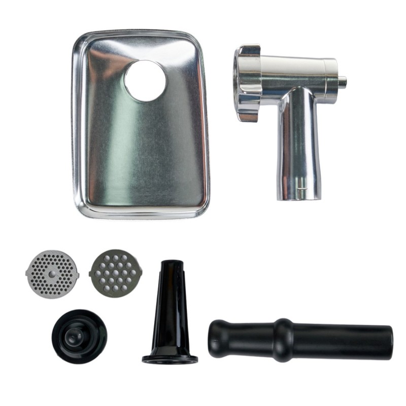 Три перфорированных диска позволяют сделать фарш разного помола, благодаря отверстиям разного диаметра. А с помощью дополнительных насадок можно сделать домашние колбаски и кеббе.
