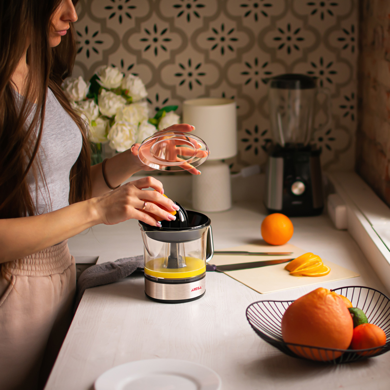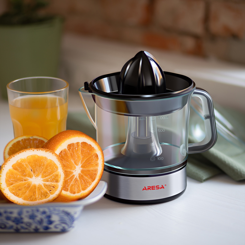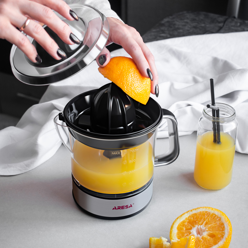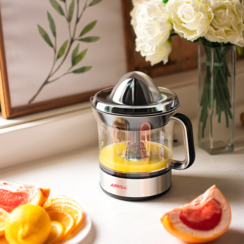 Соковыжималка электрическая Aresa AR-2503 – компактный серебристый прибор с емкостью для сока на 700 мл. Устройство работает на одной скорости, позволяя быстро получить вкусный и натуральный сок из цитрусовых фруктов. Прибор действует от стандартной сети с мощностью всего 40 Вт.