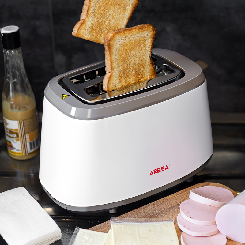 Тостер Aresa AR-3003 белого цвета имеет довольно привлекательный внешний вид, и способен придать вашей кухне дополнительный уют. С его помощью вы всегда сможете поджарить хлеб для вкусных бутербродов. Кроме того, в тостере предусмотрена функция размораживания, позволяющая оттаивать хлеб, хранящийся в холодильнике, и функция подогрева, просто делающая этом хлеб теплым. Конструкция тостера предполагает 2 отсека для поджаривания тостов. Туда можно помещать даже очень маленькие ломтики, которые удобно доставать благодаря системе экстра-подъема.