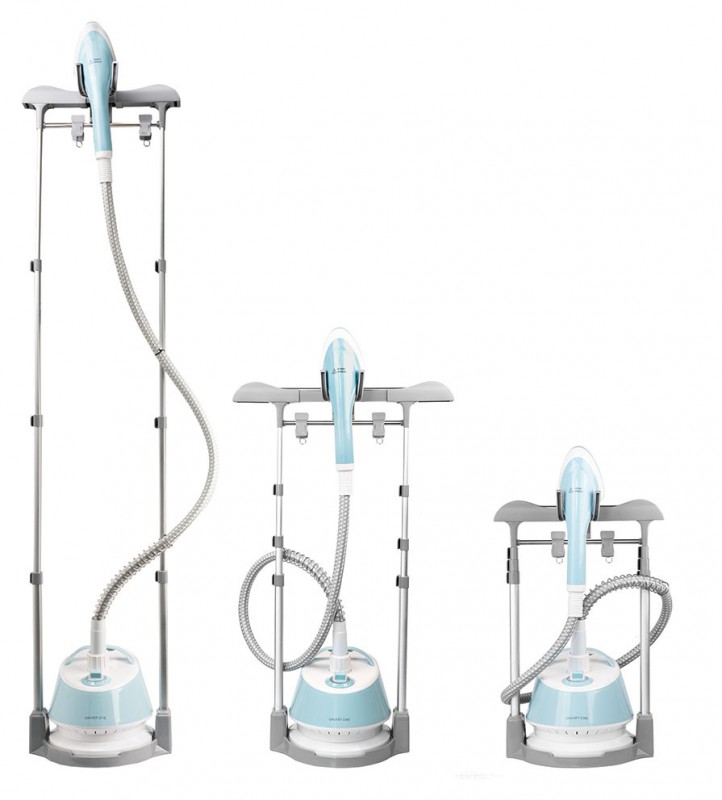 Отпариватель имеет двойную четырехсекционную телескопическую стойку длиной 130 см с возможностью регулировки по высоте.