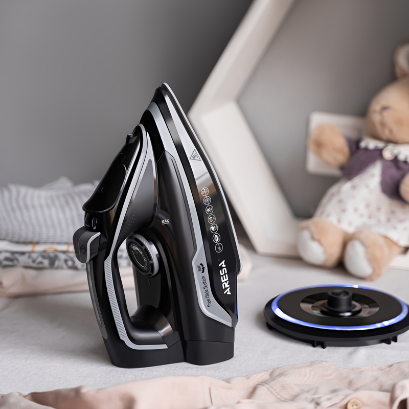 Утюг AR-3124 имеет мощность в 2350 Вт, что позволяет устройству в считанные секунды разогреться до указанной температуры и справится с самыми сложными складками на любом типе тканей. Утюг нагревается на подставке, а потом может работать с применением постоянного парового удара 30 секунд, после чего требует установки на подставку, без использования пара утюг работает до 2 минут, это позволяет разгладить любые складки на ткани, прогладить шторы не снимая их с карниза, пропарить зимнюю одежду на вешалках и многое другое.