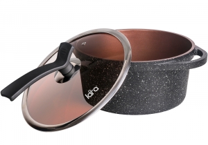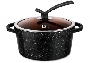 Кастрюля LARA серия CHOCO 22см, 3.1л, мрамор, капсулированное индукционное дно, крышка LR02-203 CHOC