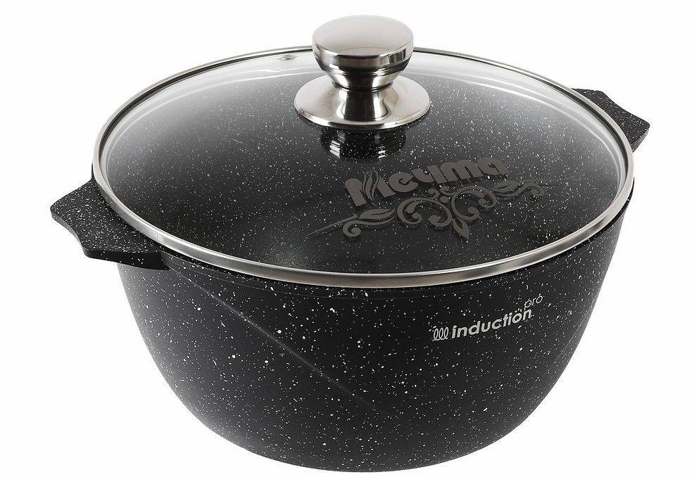 Кастрюля индукционная 5 литров Гранит Black Induction PRO Мечта отлита из высококачественного пищевого алюминия. Обладает быстрым нагревом и равномерным распределением тепла по всей поверхности.