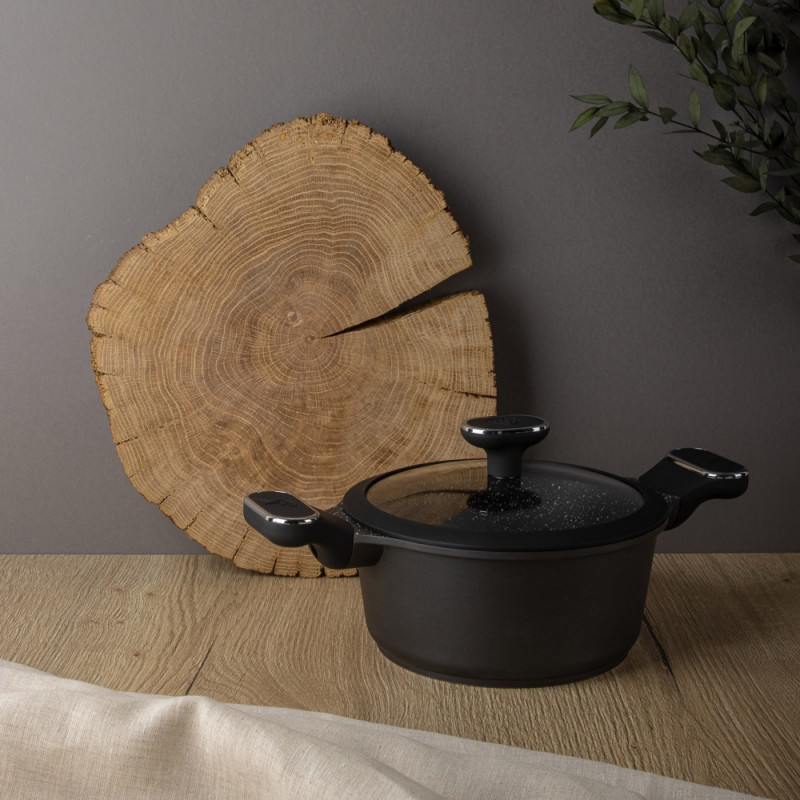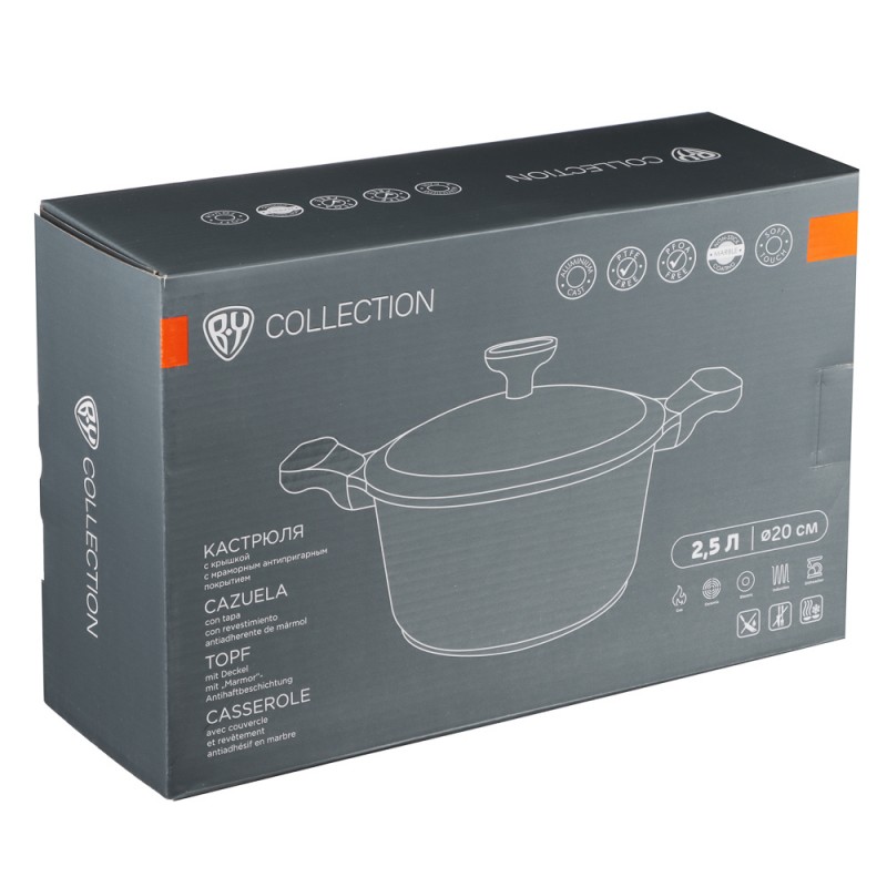 Кастрюля с крышкой литая 2,5л, d=20см, антипригарное покрытие мрамор, индукция BY COLLECTION 846-586