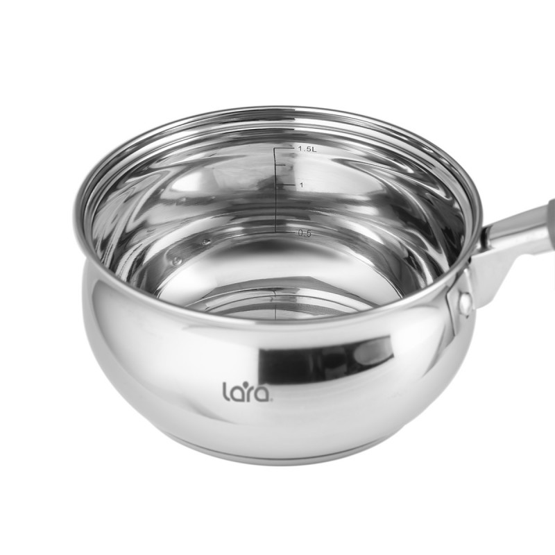 Сотейник LARA (нерж) серия BELL 16*8,5см, 1,8л,капсулированное индукционное дно, крышка LR03-14