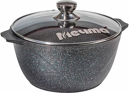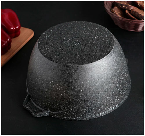 Используемое антипригарное покрытие премиум класса Granit представляет собой многослойную систему. Благодаря этому получается мощнейшая монолитная структура, которая многократно повышает прочностные и антипригарные свойcтва покрытия.