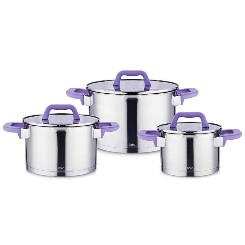 Набор посуды LARA ЛАВАНДА 3пр. (кастр. 2+2,8+3,8л) индукционное 5-ти ступ. капс. дно LR02-124