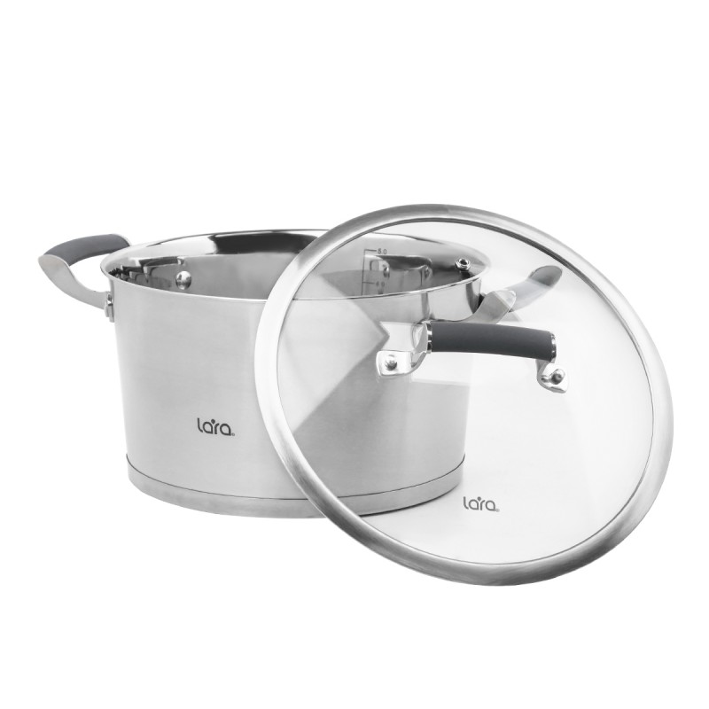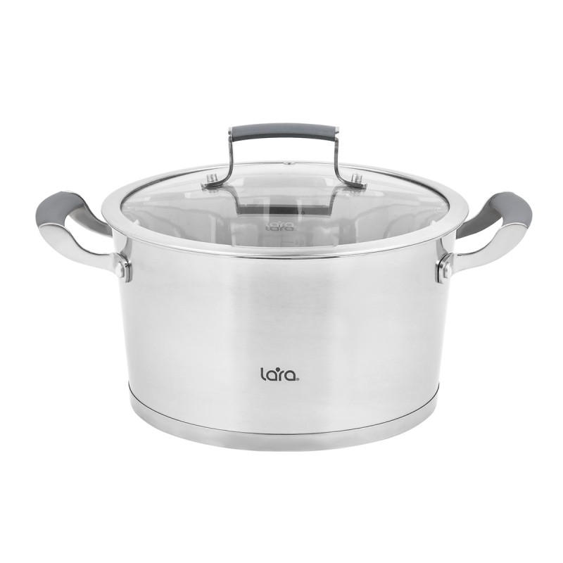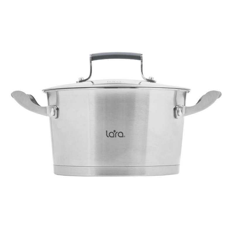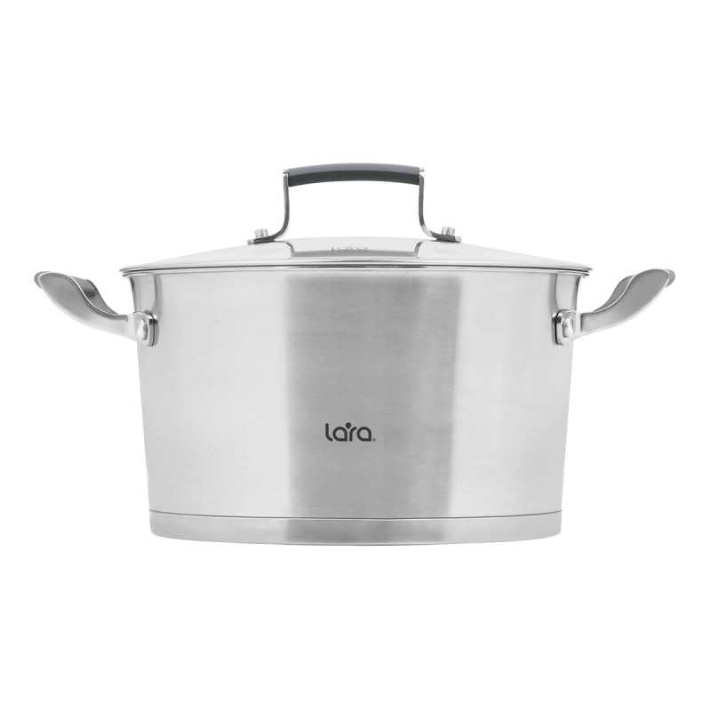 Набор посуды LARA серии «Венера» подчеркнет вашу индивидуальность и украсит кухонное пространство. Кастрюли выполнены из нержавеющей стали и отличаются высоким качеством и надежностью. Толстое пятислойное капсулированное дно обеспечивает равномерный нагрев и длительное сохранение тепла, предотвращая подгорание пищи. Все кастрюли оснащены крышкой из жаропрочного стекла. Наши изделия подходят для всех видов плит, включая индукционные. Для вашего комфорта предусмотрены ненагревающиеся ручки с силиконовым покрытием. Мы подобрали оптимальное сочетание литражей в одном наборе, чтобы вы могли наслаждаться готовкой с посудой Lara.