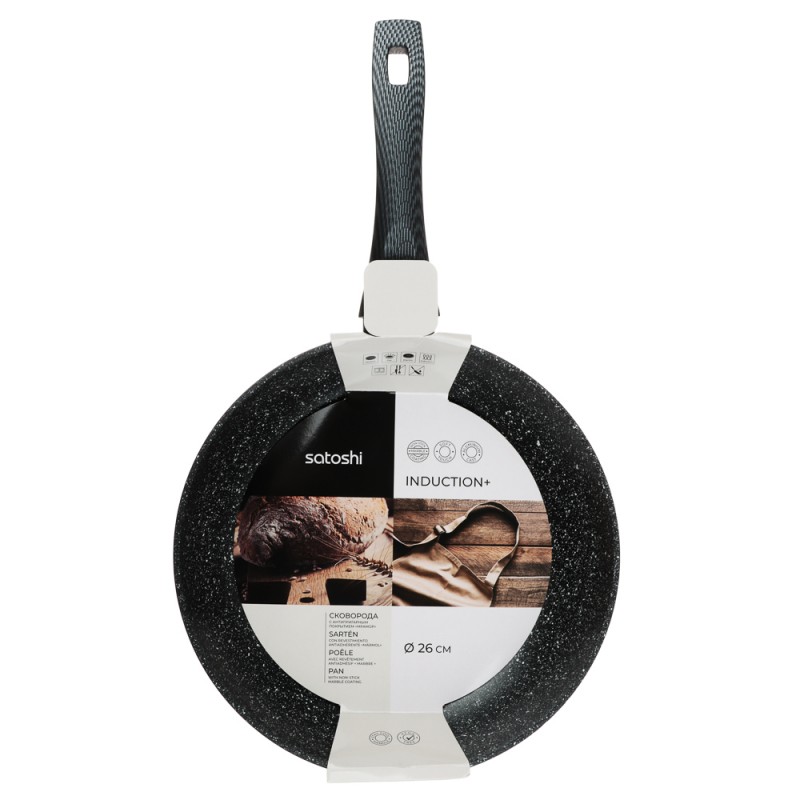Сковорода литая d26см, антипригарное покрытие Мрамор, индукция SATOSHI Карбон 846-453