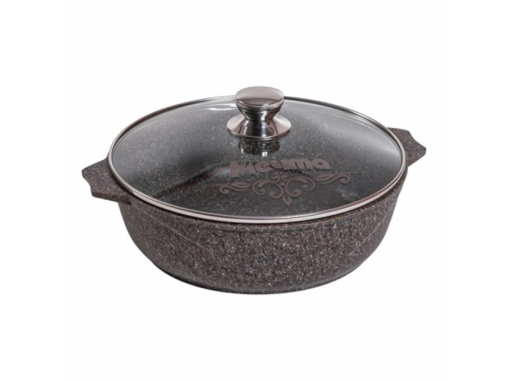 Жаровня "Мечта" 3л Премиум с антипригарным покрытием с крышкой. Цвет: Коричневый. Объём: 3 л. Диаметр: 26 см. Диаметр дна: 21 см. Высота: 8.2 см. Толщина стенки: 4 мм. Толщина дна: 6 мм. Жаровня с крышкой «Мечта Премиум» – незаменимый инвентарь для вашей кухни. Для всех типов плит (газовых, электрических, стеклокерамических), кроме индукционных. Можно использовать в посудомоечной машине. Жаровня с высококачественным антипригарным покрытием. Сверхпрочное антипригарное покрытие отличается особой износостойкостью и превосходными антипригарными свойствами, рассчитано на интенсивное использование в течение длительного срока. Удобная крышка из жаропрочного стекла с безопасной ручкой, окантовкой из нержавеющей стали, с пароудалителем. В ней можно приготовить много блюд без масла: овощи, соусы, тушеное мясо и даже десерты. Декоративная кухонная посуда с полимерным покрытием может использоваться как кастрюля для приготовления супа, сковорода для жарки, противень для запекания в духовке, казан для гриля и мангала.