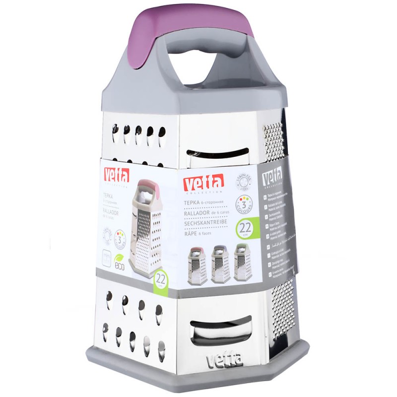 Купить Терка 6-и сторонняя 22см, нерж.сталь, 4 цвета ручки VETTA 885-107 вы можете в компании Дровосек-НК, оформив заказ в интернет магазине, или отправив заявку по почте, а также по телефону или в офисе компании.