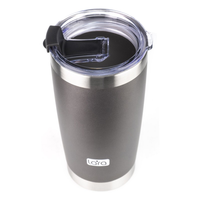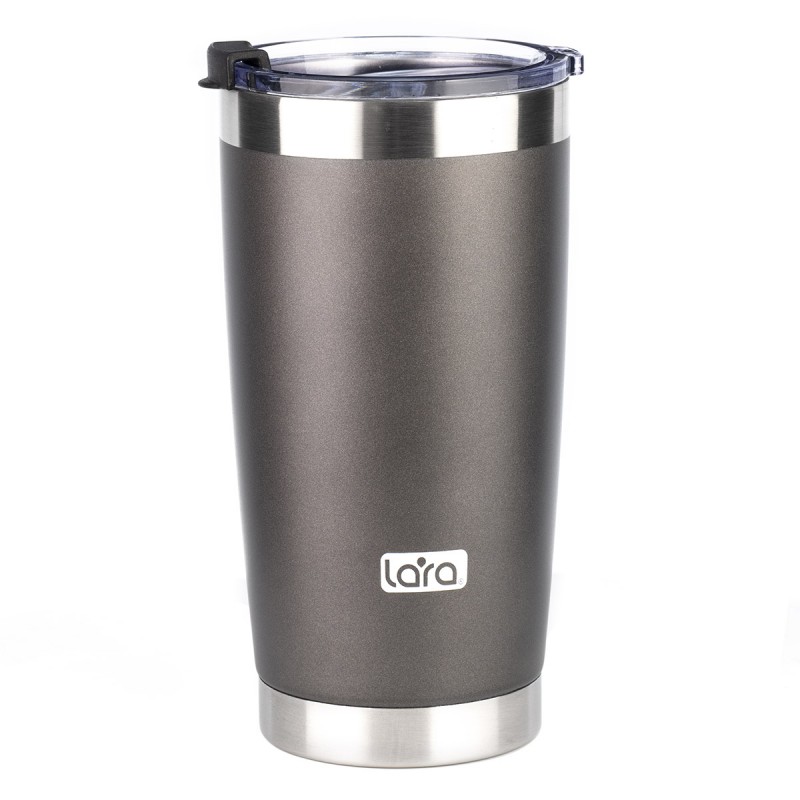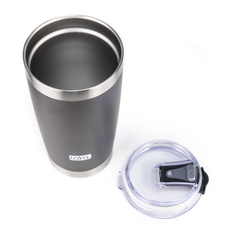 Стильная термокружка LARA LR04-25 – полезный аксессуар для любителей горячих напитков. Объем (560 мл) заменяет две-три чашки чая или кофе. Благодаря двойным стенкам напиток остается горячим гораздо дольше, чем в обычном стакане. Внутренняя колба изготовлена из пищевой нержавеющей стали AISI 304: это безопасный и удобный в уходе материал. Кружка закрывается прозрачной крышкой с клапаном.