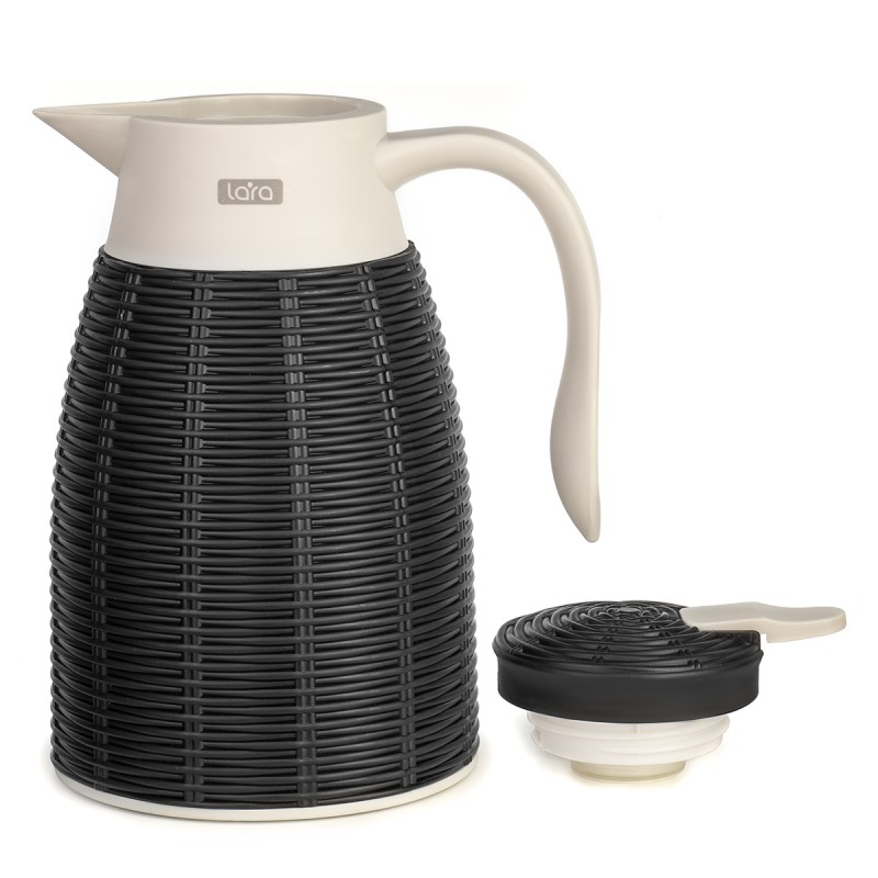 Термос LARA Black 1000мл, стеклянная колба, стилизация под ротанг LR04-80 Black
