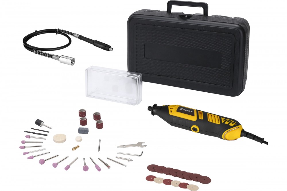 Электрический цифровой гравер 350Вт, набор 43 инструментов DEKO DKRT350E-LCD 43 tools, case 063-1413 идеально подходит для шлифования и полировки небольших поверхностей благодаря автоматически регулируемой мощности и различным аксессуарам.
