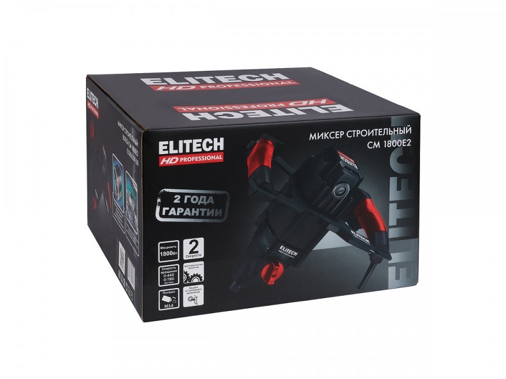 Строительный миксер ELITECH HD CM 1800E2 мощностью 1800 Вт предназначен для перемешивания строительных и отделочных материалов, таких как бетон, раствор, штукатурка, краски, клеи и др. Низкие обороты и высокий крутящий момент позволяют работать с самыми густыми и плотными смесями. Высокая мощность, двухступенчатый редуктор, низкая скорость вращения для работы с густыми составами, защита от случайного включения, стандартная посадка венчиков М14.