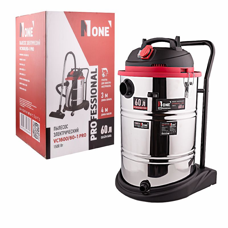 Пылесос строительный Number One VC1600/60-1 PRO (60л,1600Вт,4м шланг,пылесборник) №1