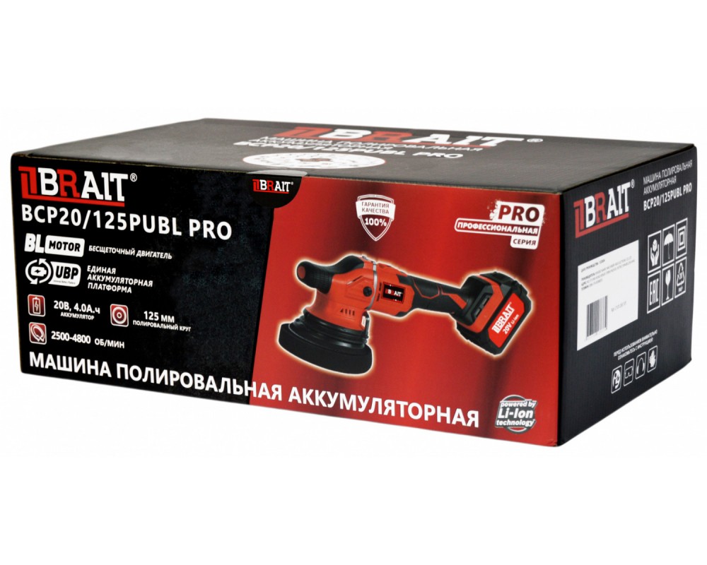 Машина шлифовальная полировальная акк BRAIT BCP20/125PUBL PRO (20В, б/щ) 21.01.265.101
