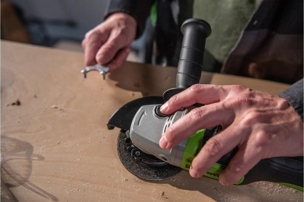 Угловая шлифовальная машина Greenworks GD24AGK2 - предназначена резки и шлифования металла. Мощный бесщеточный двигатель работает от аккумулятора 24В, что определяет высокую производительность и скорость реза.