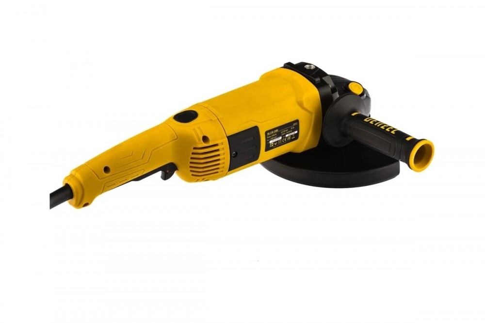 Угловая шлифовальная машина Denzel AG230-2400 26915 мощностью 2400 Вт совместима с насадками максимальным диаметром 230 мм, поддерживает частоту вращения шпинделя 6000 об/мин, благодаря чему эффективно справляется с обработкой и зачисткой поверхностей, а также резкой, шлифовкой металла толщиной до 80 мм и камня. Пригодится дома, в гараже и на даче.