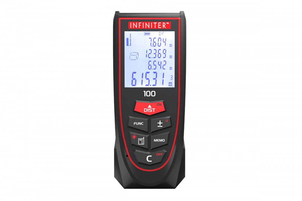 Лазерный дальномер INFINITER 100 1-2-324 оснащен функциями: измерение расстояний, длин, высот, проведение вычислений площадей и объемов измеряемых объектов, а также косвенных измерений с помощью теоремы Пифагора.