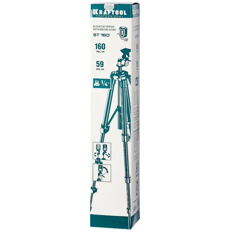 Элевационный штатив KRAFTOOL ST 160 34714 предназначен для работы с лазерным, оптическим и фотоинструментом. Тип штатива: элевационный. Резьба: 1/4 дюймов. Максимальная нагрузка: 5 кг. Прибор можно точно установить на нужной высоте при помощи выдвижной колонки. Выполнен из алюминиевого сплава, благодаря чему имеет небольшой вес. А за счёт малого размера в сложенном виде штатив легко носить и легко с ним работать.