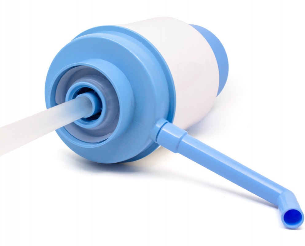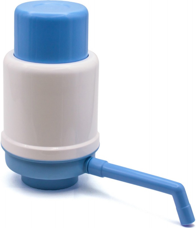 Механическая помпа для воды Aqua Work. Представляет собой устройство, перекачивающее воду из одного сосуда в другой. На корпусе предусмотрена пластиковая трубка, направляющая поток жидкости в подставленную емкость. Механическая помпа для воды состоит из корпуса со съемным основанием, внутри которого расположен нажимной гофрированный стакан с возвратной пружиной. Для забора жидкости из бутыли разного объема предусмотрена трубка, состоящая из 3 секций. При нажатии на стакан гофра сжимается и создает внутри резервуара избыточное давление воздуха. Питьевая вода вытесняется по трубке и попадает в наливной кран с предохранительной заглушкой. Корпус устанавливается на горловине бутыли через прокладку, предотвращающую утечки воздуха. Использование механического насоса позволяет ставить бутыль на пол. При установке кулера в помещении требуется поднимать и переворачивать резервуар, который весит больше 20 кг. Механическая помпа для воды 19л