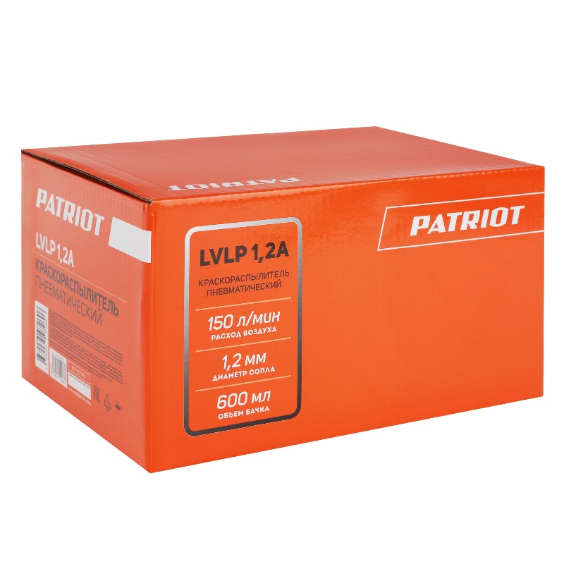 Краскораспылитель пневматический PATRIOT LVLP 1,2B (верх.бачок 0,6л, сопло 1,2мм) 830901016