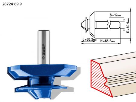 Фреза кромочная д/углового сращивания D-69,9мм, рабочая длина-30,2мм,хв.-12мм 28724-69.9