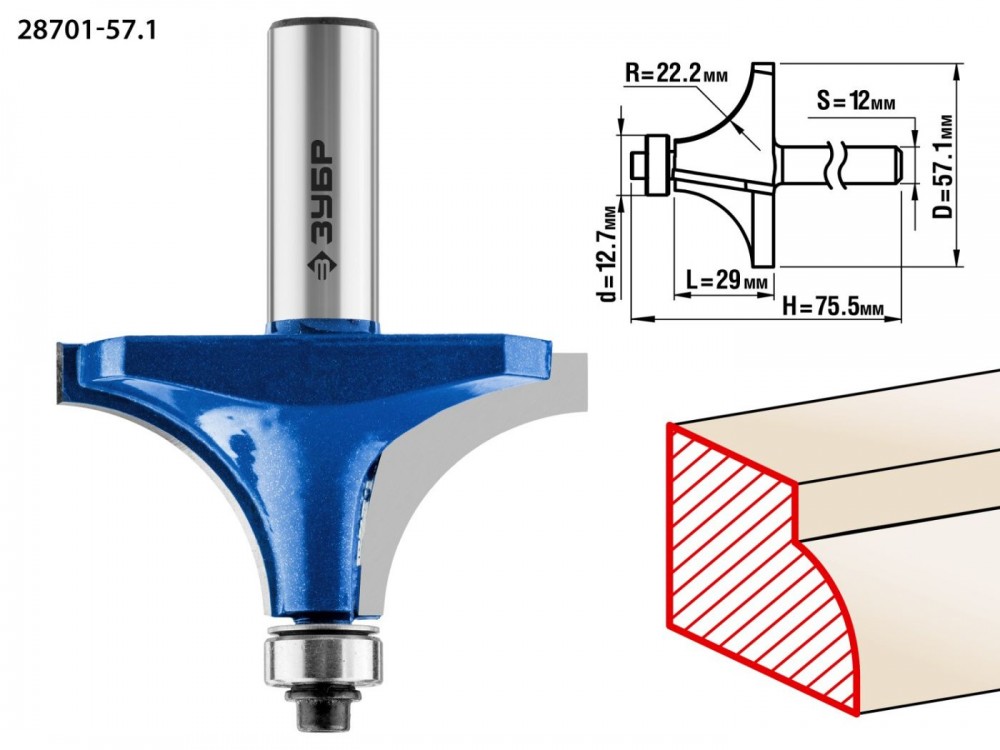 Фреза кромочная калевочная ЗУБР 28701-57.1, предназначена для скругления кромок при обработке столешниц, полок, шкафов и прочих работ с разнообразными видами древесины. Высококачественный твердый сплав для повышенного ресурса и чистоты обработки. Заточка производится только на самых современных станках с ЧПУ. Упорный подшипник позволяет обрабатывать криволинейные кромки без дополнительных приспособлений.