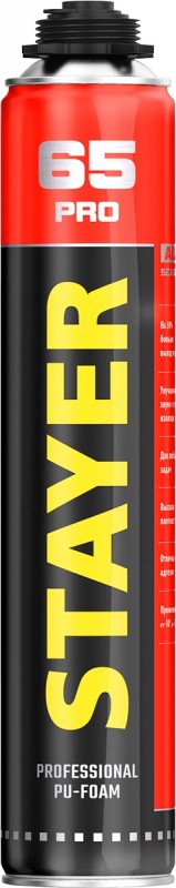 Монтажная пена STAYER PRO 65 800 мл с увеличенным выходом, пистолетная, всесезонная 41137 применяется для монтажа и герметизации оконных и дверных блоков, подоконников, а также для изоляции проводки и технических коммуникаций, тепло- и звукоизоляции, заполнения швов, щелей, пустот. Можно использовать в широком температурном диапазоне: от -10 до +35°С.