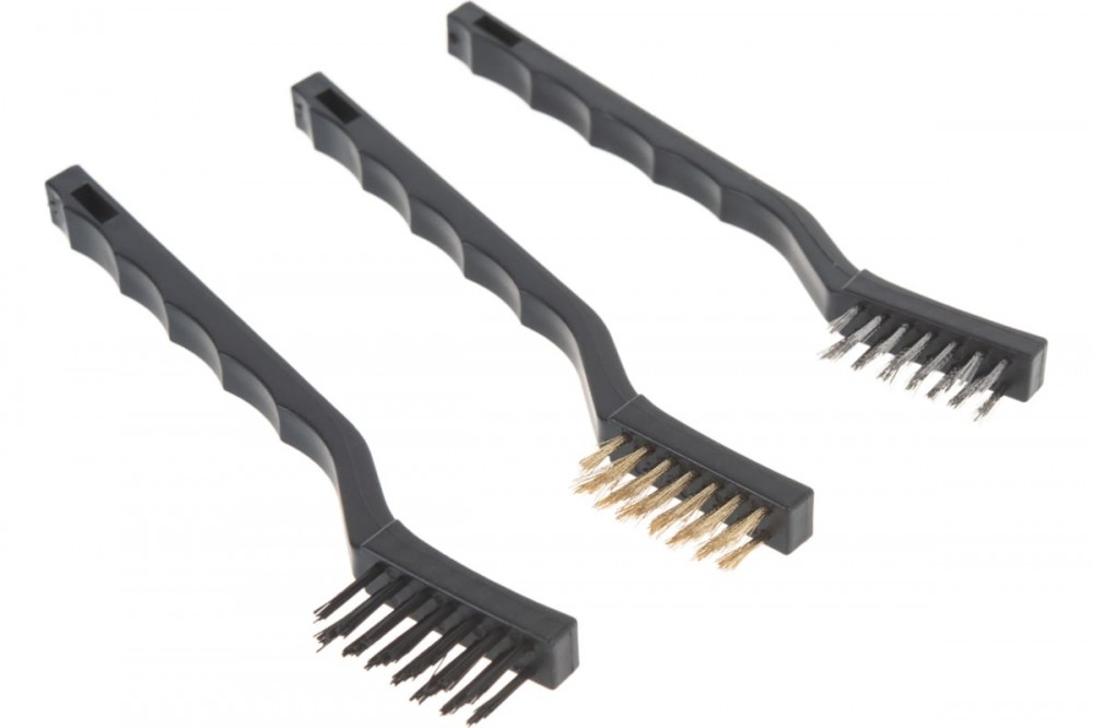 Набор малых щеток Matrix 74860 с пластмассовыми ручками предназначен для различных видов обработки — стальные удаляют ржавчину, загрязнения и старую краску с металлических и других поверхностей, а нейлоновая браширует и мягко очищает деревянные изделия. Щетки имеют удлиненные ручки, а длина рабочих частей составляет 34 мм, поэтому они идеально подходят для работы на небольших участках и в труднодоступных местах. Набор пригодится во время ремонта, кузовных работ, а также будет полезен в быту.