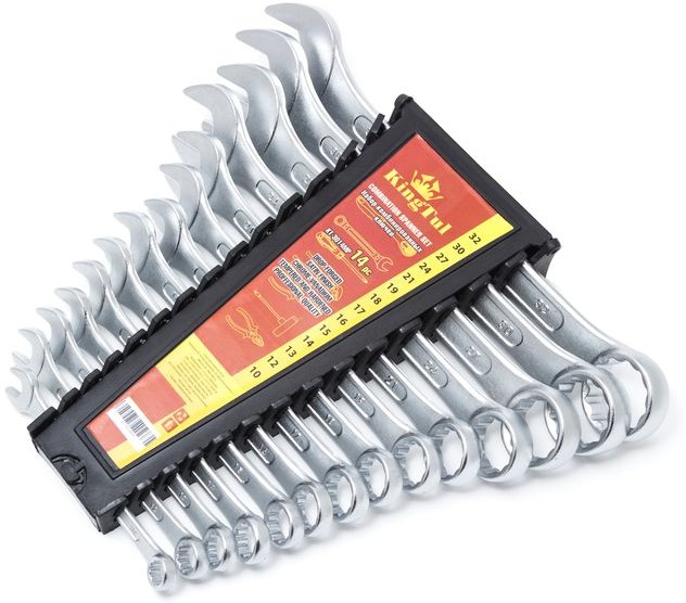 Каждый инструмент представляет собой сочетание из рожкового и накидного ключа, расположенных на одной общей рукоятке. Рожковая сторона ключа подходит для работ с крепежом, доступ к которому есть лишь с одной стороны; а накидная часть для проведения работ с высоко нагруженными резьбовыми соединениями. Ключи изготовлены из высококачественной хромованадиевой стали, что значительно увеличивает их устойчивость к механическим нагрузкам, а также надежную защиту от коррозии.
