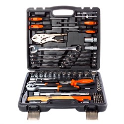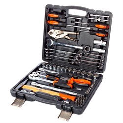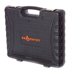 Для удобства все элементы набора уложены в прочный пластиковый кейс. Наличие трещотки с быстрым сбросом позволяет работать с крепежом различного размера, затрачивая минимум времени на подбор оснастки.