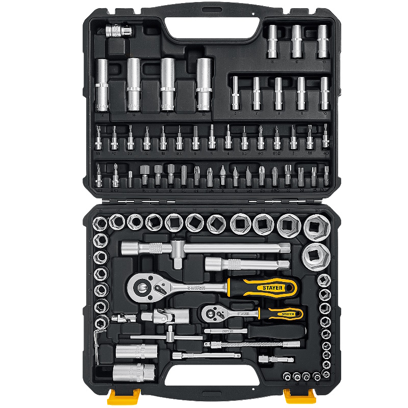 Универсальный набор инструмента, STAYER 27760-H94_z01, предназначен для монтажа и демонтажа резьбовых соединений при ремонте автомобилей и других изделий.