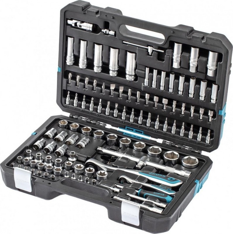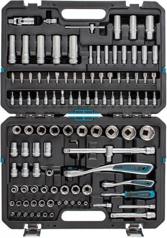 Набор инструментов 109 предметов GROSS 14155 — универсальный комплект для работ по обслуживанию автомобиля. Пригодится в автомастерской или для бытового использования. Все предметы изготовлены из хромванадиевой стали высокого качества, прочны и надежны. Шаг храпового механизма трещотки - 3°. Инструменты поставляются в удобном пластиковом кейсе, где для каждого изделия предусмотрена надежная фиксация.