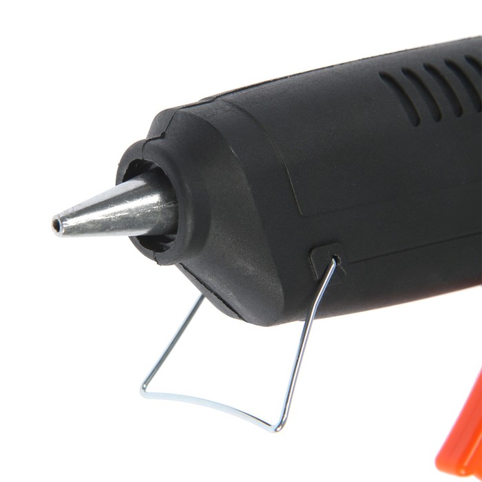 Клеевой пистолет предназначен для склеивания различных материалов горячим клеем. Инструмент имеет широкую сферу применения. Благодаря встроенной откидной подставке инструмент можно хранить в вертикальном положении.