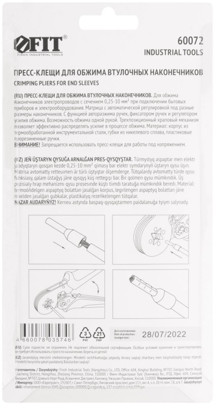 Купить Пресс-клещи для обжима втулочных наконечников 0,25-10мм 175мм FIT 60072 вы можете в компании Дровосек-НК, оформив заказ в интернет магазине, или отправив заявку по почте, а также по телефону или в офисе компании.