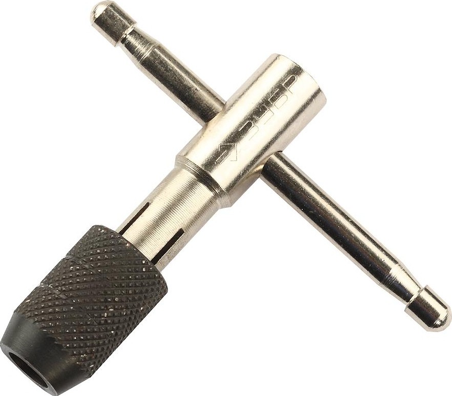 Т-образный метчикодержатель с фиксирующим шариком, Зубр М8-М12, L-83мм/L-100мм 28136-83 применяется для фиксации метчиков при нарезании резьбы.