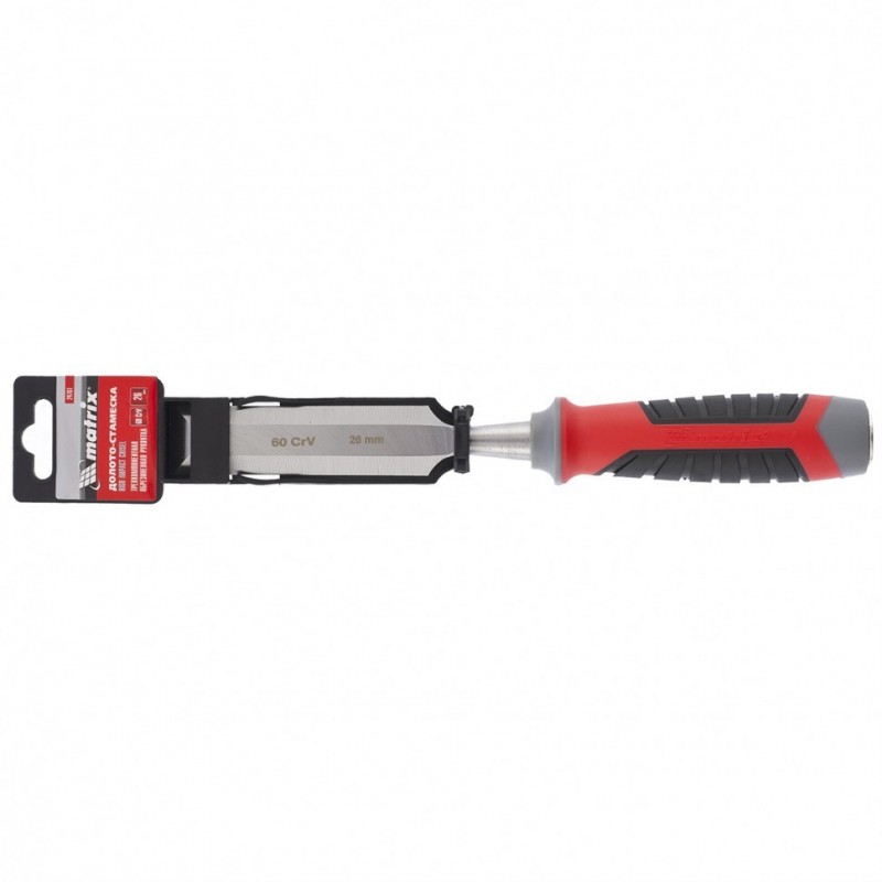 Долото-стамеска Matrix 24761, 60 CrV, с шириной полотна 26 мм и трехкомпонентной обрезиненной рукояткой используется в столярном и мебельном производстве. Оно позволяет выбрать углубления, снять фаски, зачистить пазы, создать декоративную резьбу на деревянной поверхности. Благодаря металлическому затыльнику долото-стамеску можно использовать с ударным инструментом для лучшего врезания в дерево.