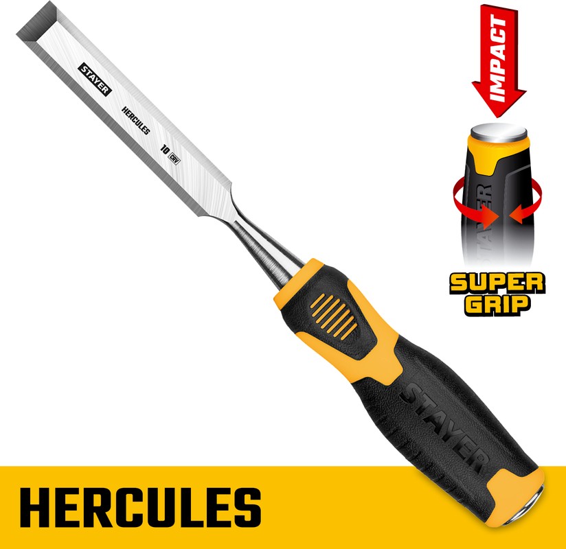 Стамеска-долото Stayer HERCULES 10 мм 18205-10_z01 изготовлена из упрочненной стали для увеличения срока службы. Удобство работы с инструментом обеспечивает скос на лезвии.