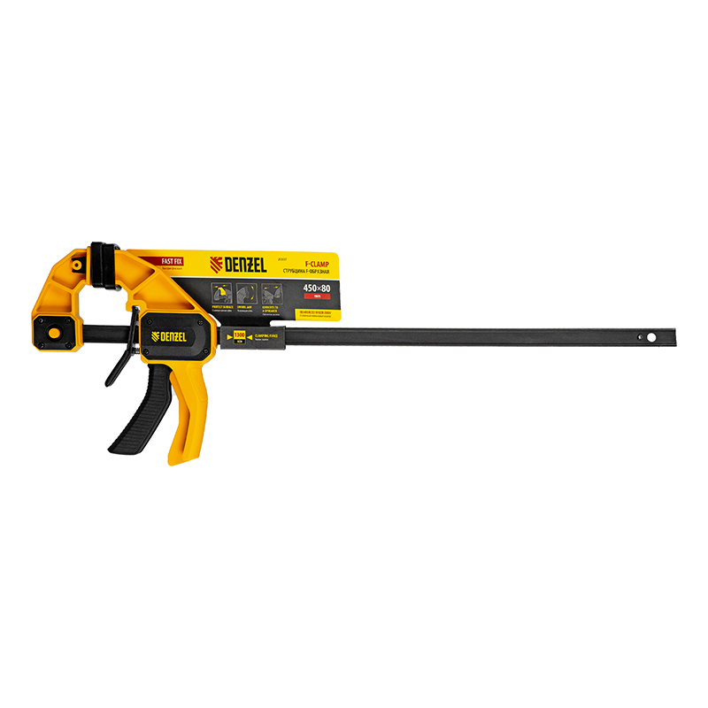 Струбцина F-образная 450*80мм быстрозажимная, усиленный нейлоновый корпус Denzel 20507
